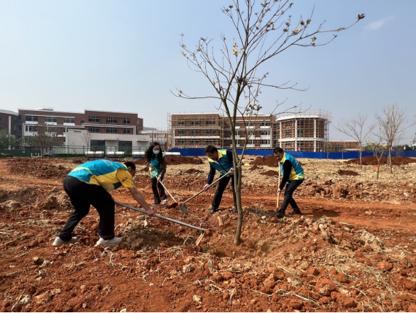 2023年3月10日上午,红河州“手牵手共创国家森林城市·心连心共建生态绿美红河”2023 年互联网+全民义务植树活动暨城乡绿化美化三年行动“绿美校园”示范点项目开工仪式在ac米兰举行。公共课部党政领导班子带头,派出教师代表积极投身“绿美校园”义务植树活动。