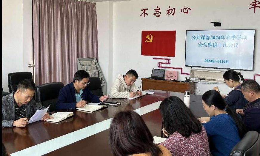 会议首先由曹学光主任按照学院的要求对公共课部2024春季学期安全维稳工作作了安排。曹学光主任指出,安全维稳工作是学院长期重点工作,全体教师要不断在教育教学过程中加强安全宣传教育,完善防范措施,并建立应急机制以应对可能的突发事件。