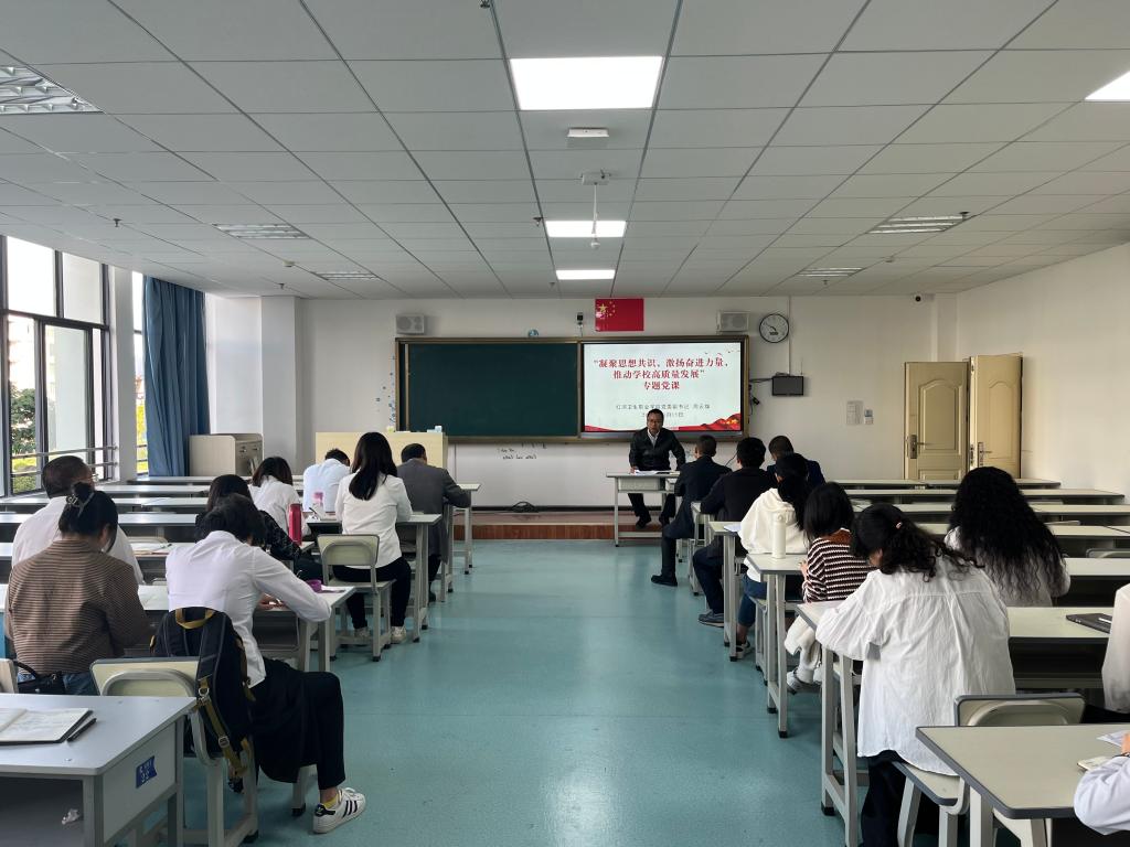 2023年11月15日,学院党委副书记周云雄在公共课部讲授“凝聚思想共识,激扬奋进力量,推动学校高质量发展”专题党课时强调,要统一思想,以学促干,在推动学校高质量发展上展现新作为。公共课部党总支书记王红亮主持,公共课部全体党总支党员参加党课。