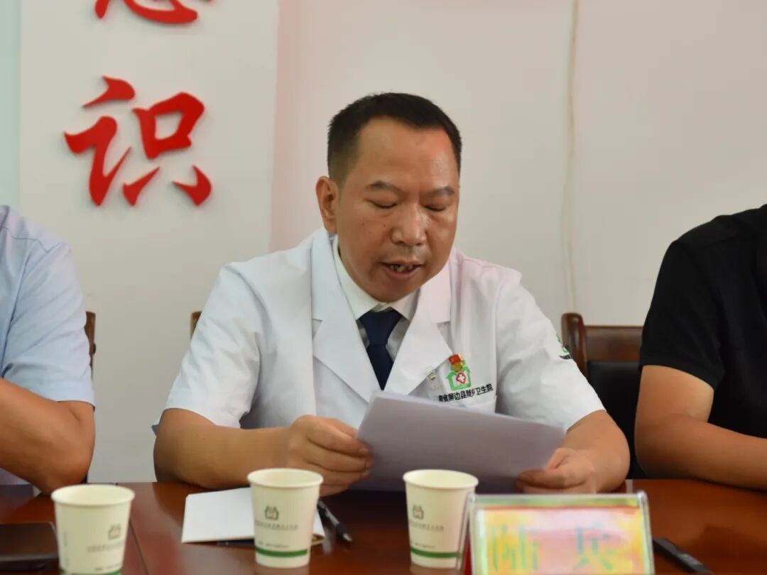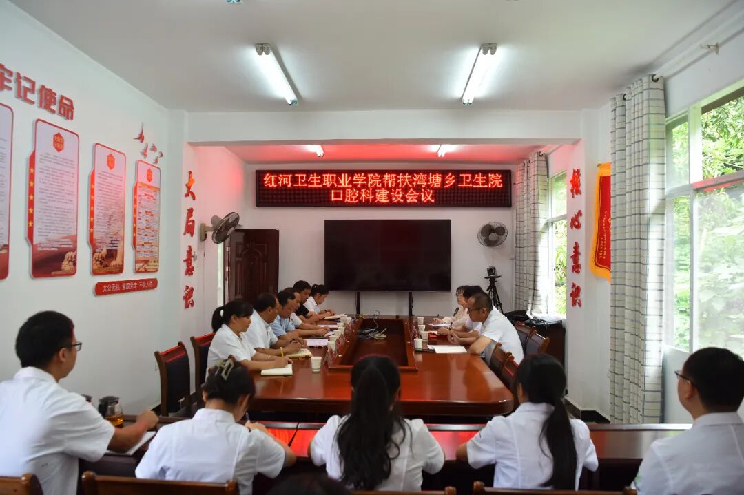 在湾塘乡卫生院口腔科建设会议上,湾塘乡卫生院院长陆兵介绍了卫生院发展概况及口腔科建设背景;湾塘乡党委书记李正乔对学校的帮扶表示感谢,强调了口腔科开科对提升当地医疗卫生水平的重要意义