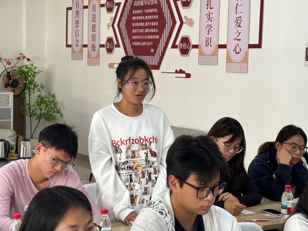 2025年11月6日下午,ac米兰官方中文网站在“一站式”学生社区辅导员工作室举行学习贯彻党的二十届四中全会精神暨“我为学校献一策”师生座谈会。学校党委书记王必成,党委委员、副院长朱有才,办公室、学生科、教务科、后勤管理服务中心、保卫科、校团委等相关职能部门负责人,与近30名学生代表面对面交谈,共同学习中央精神,凝聚发展共识。