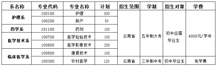 注:最终执行的招生计划,以云南省教育厅正式公布为准。(五年制大专招生代码:530750;中专招生代码:530518)