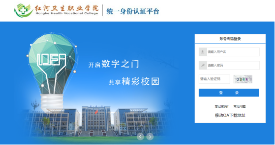 二、进入数字校园平台后,输入账号密码和验证码完成登录。