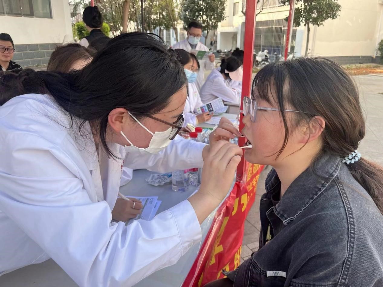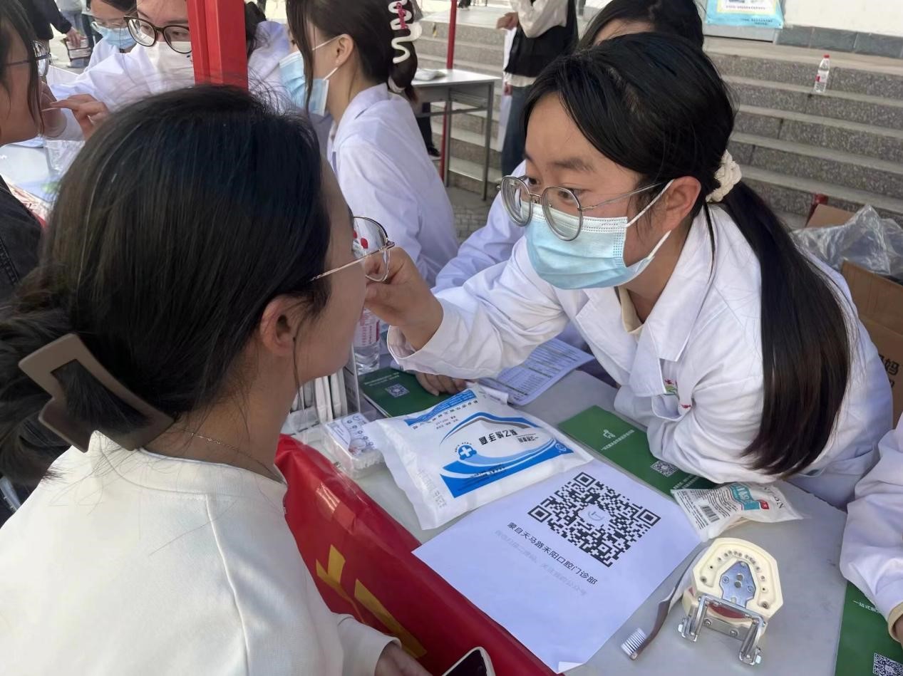 义诊现场设置了多个检查区域,由党员专业教师和志愿者学生共同组成义诊团队,以实践教学的形势,帮助众多在校师生检查口腔的同时,也锻炼了医学生们的专业素养和实践能力。