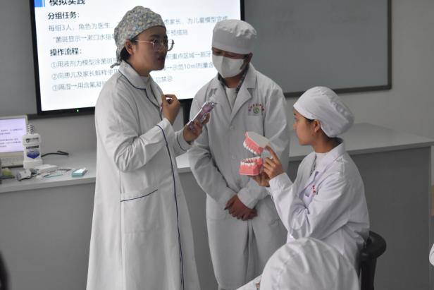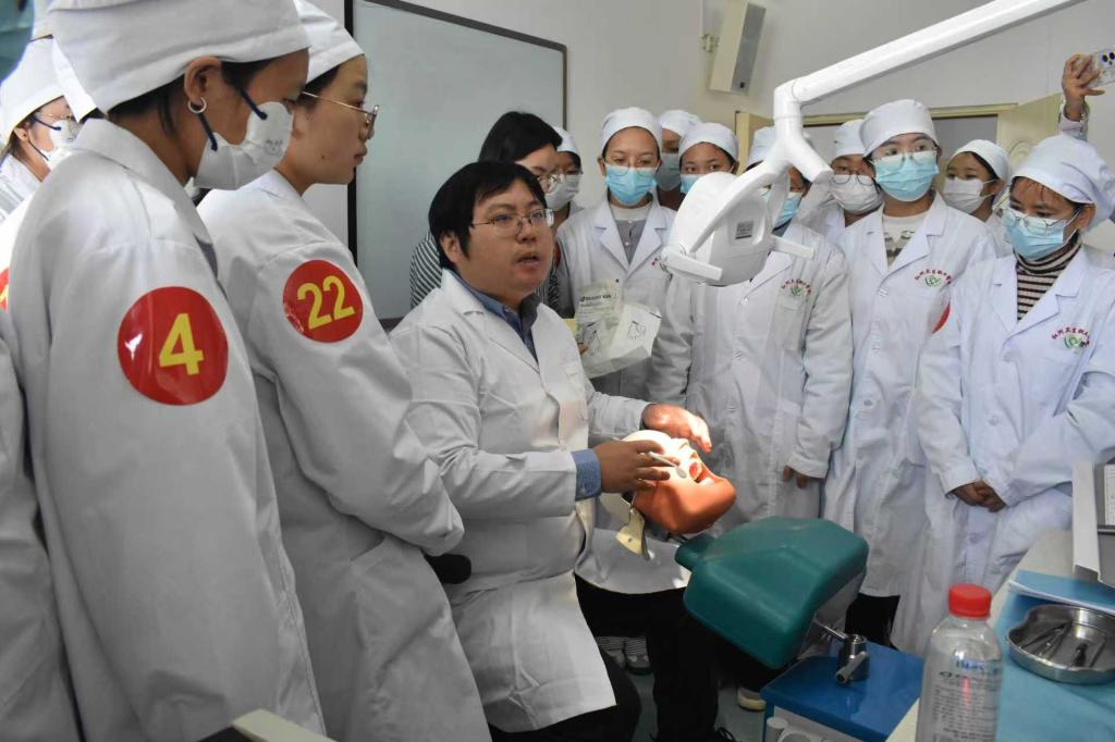 12月16日至18日,培训班首先开展了为期三天的“院校指导与观摩”环节。中华口腔医学会口腔卫生技师教育指导委员会委派专家深入善工楼四楼实训中心,对《手用器械龈上洁治术》《龈下刮治术及根面平整术》等专业核心实训课程进行了现场教学指导与示范。口腔学院口腔卫生保健专业教师团队与2024级学生共同参与了真实教学场景的展示,并与专家组围绕操作规范、教学评价、实训组织等关键环节展开深度研讨,形成了“教学—演示—反馈—优化”的闭环提升模式,切实推动实训教学的标准化与规范化。