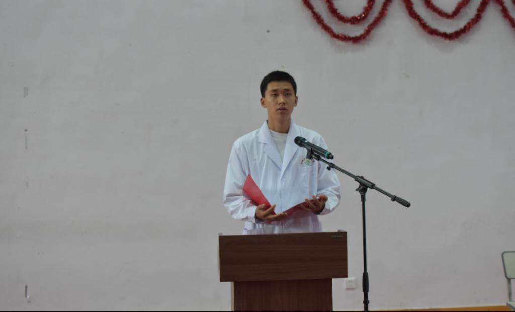 大会最后由口腔学院副院长纳锦带领全体学生进行医学生宣誓。