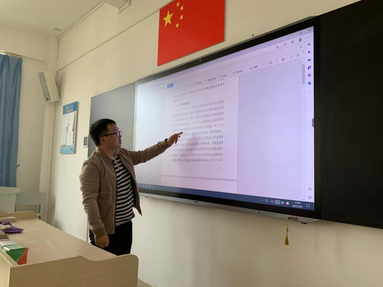 为进一步加强党对教育工作的全面领导,树立廉洁从教和修身育人的良好风气。增强学校教师职工学廉、倡廉、颂廉、践廉的意识和行为,以“清”育美德,用“廉”润心田。口腔学院怀着将清廉学校形成特色、清廉文化深入人心、清廉理念浸润师生的决心,于2023年3月8日下午在教学楼南307开展“教师警示教育会”。在口腔学院党支部书记袁庆的组织带领下,口腔学院全体教师参加了会议。