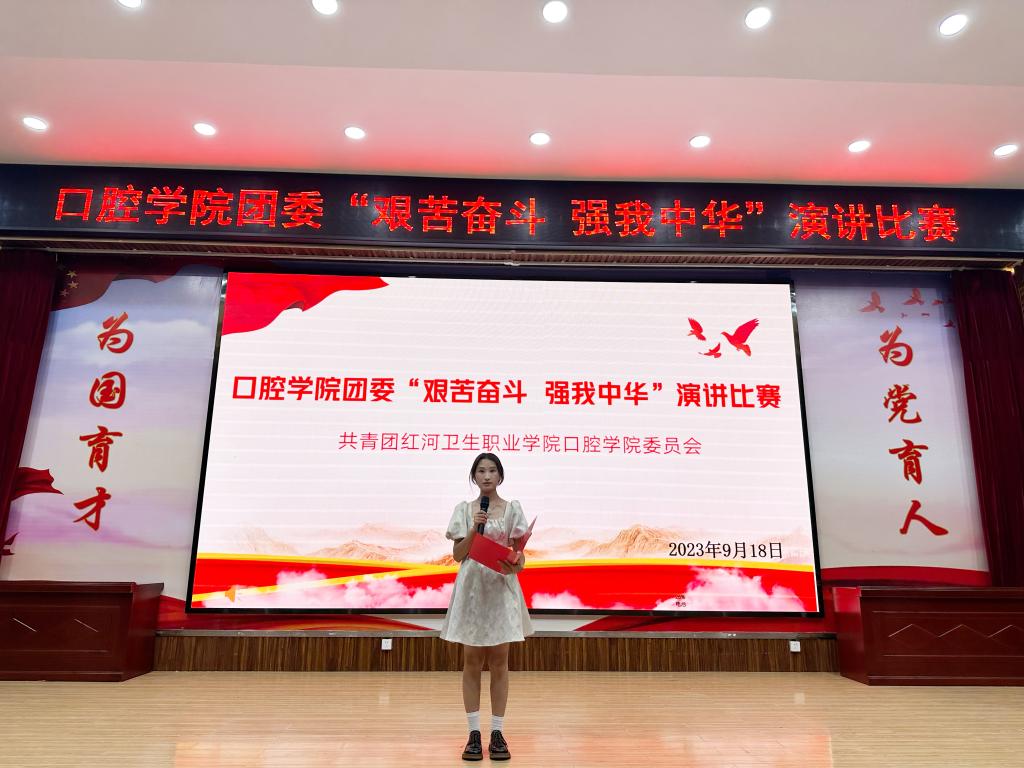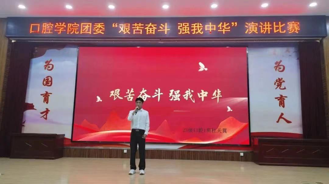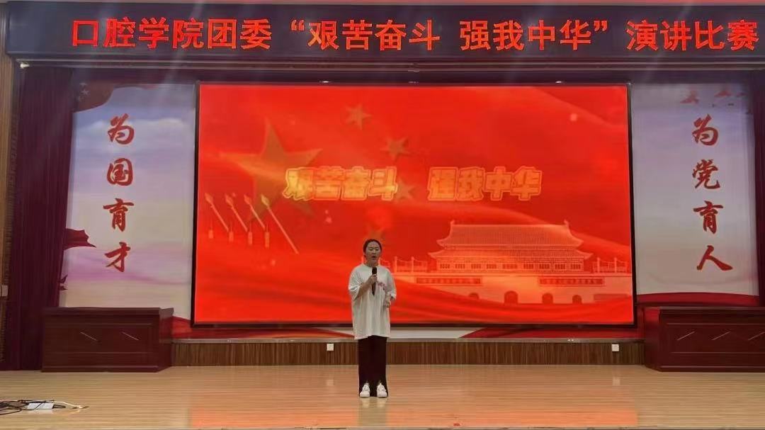 百年大党风华正茂恰青春,征程万里奋楫扬鞭正当时。为深入贯彻落实党的二十大精神,践行社会主义核心价值观,口腔学院校团委于2023年9月18日在图书馆报告厅开展“艰苦奋斗,强我中华”青年主题演讲比赛,旨在将二十大精神融入学生生活,养其苦身,宣扬强我中华之精神。