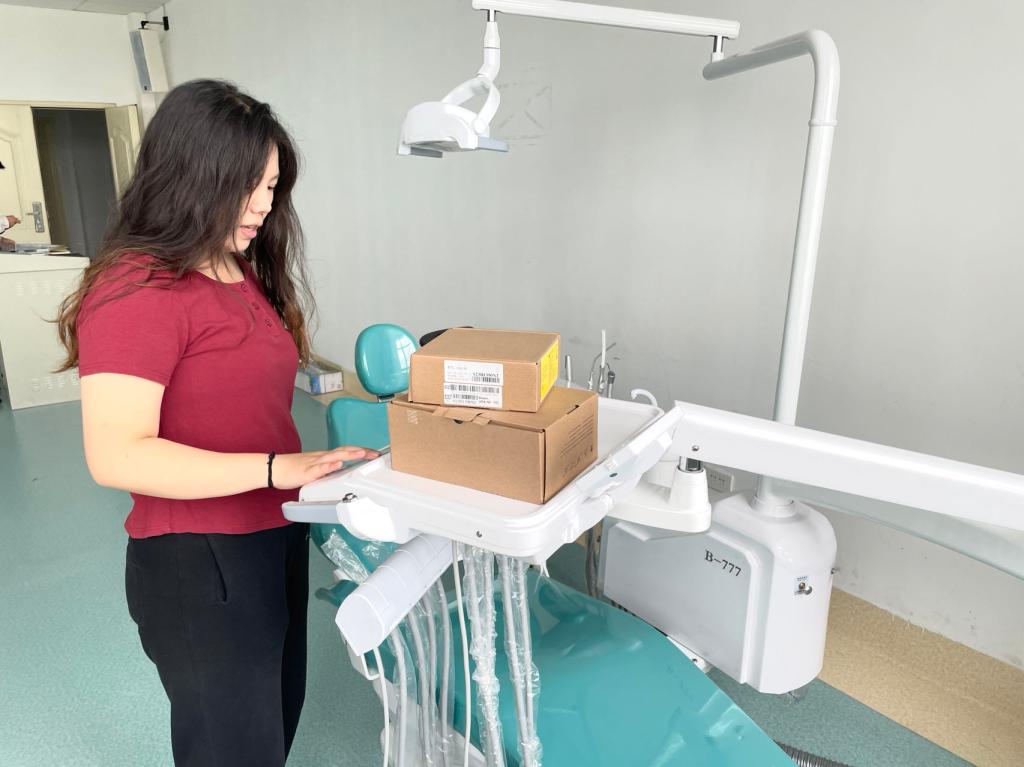 在吴老师的带领下,老师们根据口腔护理实训设备采购计划表和设备使用说明书,逐一对每台牙椅、压膜机等设备进行比对和检查。他们认真观察设备的外观和结构,仔细研读使用说明书,不放过任何一个细节。同时,老师们还亲自操作设备,测试各项功能是否正常,以便在实际教学中能够游刃有余的运用新设备。