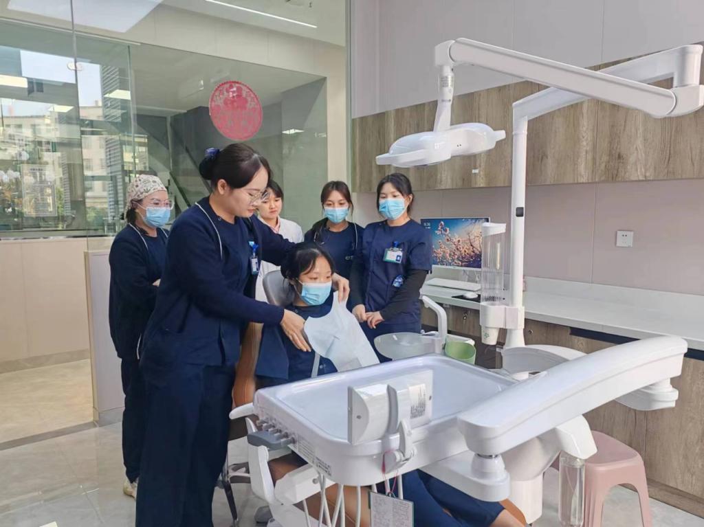 患者的接诊是口腔护士日常工作中重要而基础的工作。首先,李莎老师介绍了活动任务,以角色扮演的形式,模拟演练患者接诊、沟通、治疗、送诊流程。她强调,在接诊过程中要注重护理礼仪和护患沟通,给患者展示出良好的精神面貌和专业水平,注意无菌操作规范。随后,老师相互配合进行患者接诊流程的练习,大家相互学习并及时对接诊操作过程中容易忽略的细节和要点进行指正。