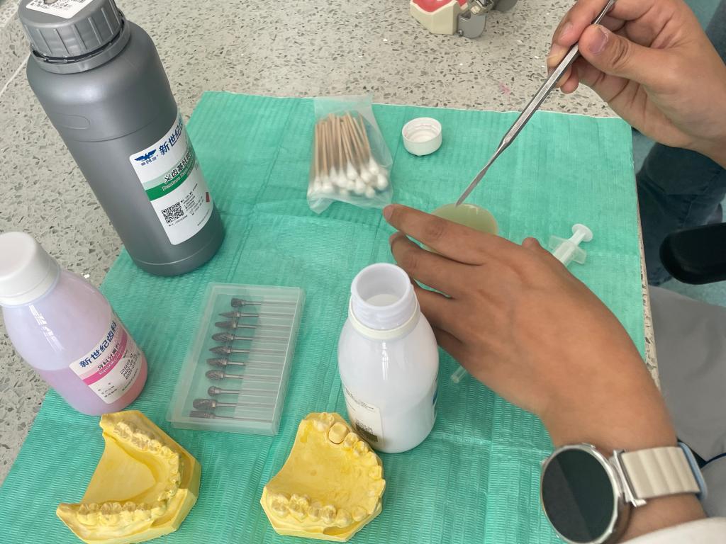 最后,教研室全体教师开展实操演练与互评交流,针对修复体边缘密合度检测、咬合面解剖形态恢复及表面抛光处理等关键技术环节进行标准化训练。通过"讲解-示范-实训-反馈"四位一体的教研模式,有效强化了教师团队的专业技能水平和教学实施能力。