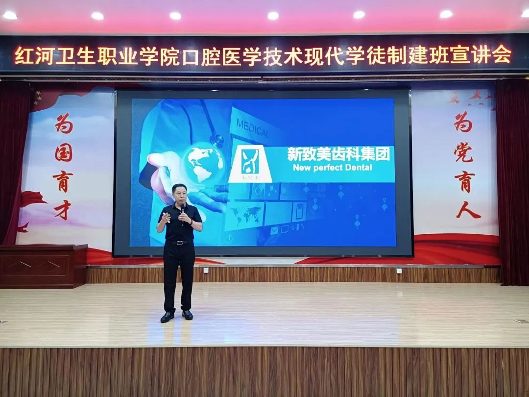 为进一步推进口腔医学技术专业现代学徒制试点工作,加强校企合作,促进人才链与创业链的有效衔接,培养高素质技能型人才,2023年11月1日晚19:30,深圳新致美精密齿研有限公司与口腔学院在图书馆报告厅举行了校企合作现代学徒制宣讲会。本次宣讲嘉宾为深圳新致美精密齿研有限公司集团常务副总兼管人事王良、口腔学院口腔医学技术专业全体教师、班主任以及2022级口腔医学技术专业的全体同学。