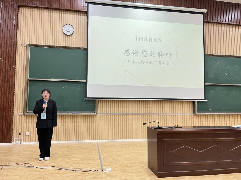 此次换届大会在主持人宣布竞选规则中正式开始,本次竞选过程中,各位候选人有序上台展开竞选演讲,他们秉持着全心全意为同学服务的工作态度认真对待本次竞选,并在演讲中阐述个人竞选优势、以及对竞选职务的认识、并针对未来工作的展望作出了详细的规划和布局,她们言语条理清晰,同时也表达了对公寓团美好未来的期盼。口腔学院的竞选结果为22口腔医学1班郭爱红同学担任部长、22口腔医学2班赵纾瑶同学担任副部长。大会尾声为上一届公寓管理部的学生干部颁发聘书,并进行合影留念。
