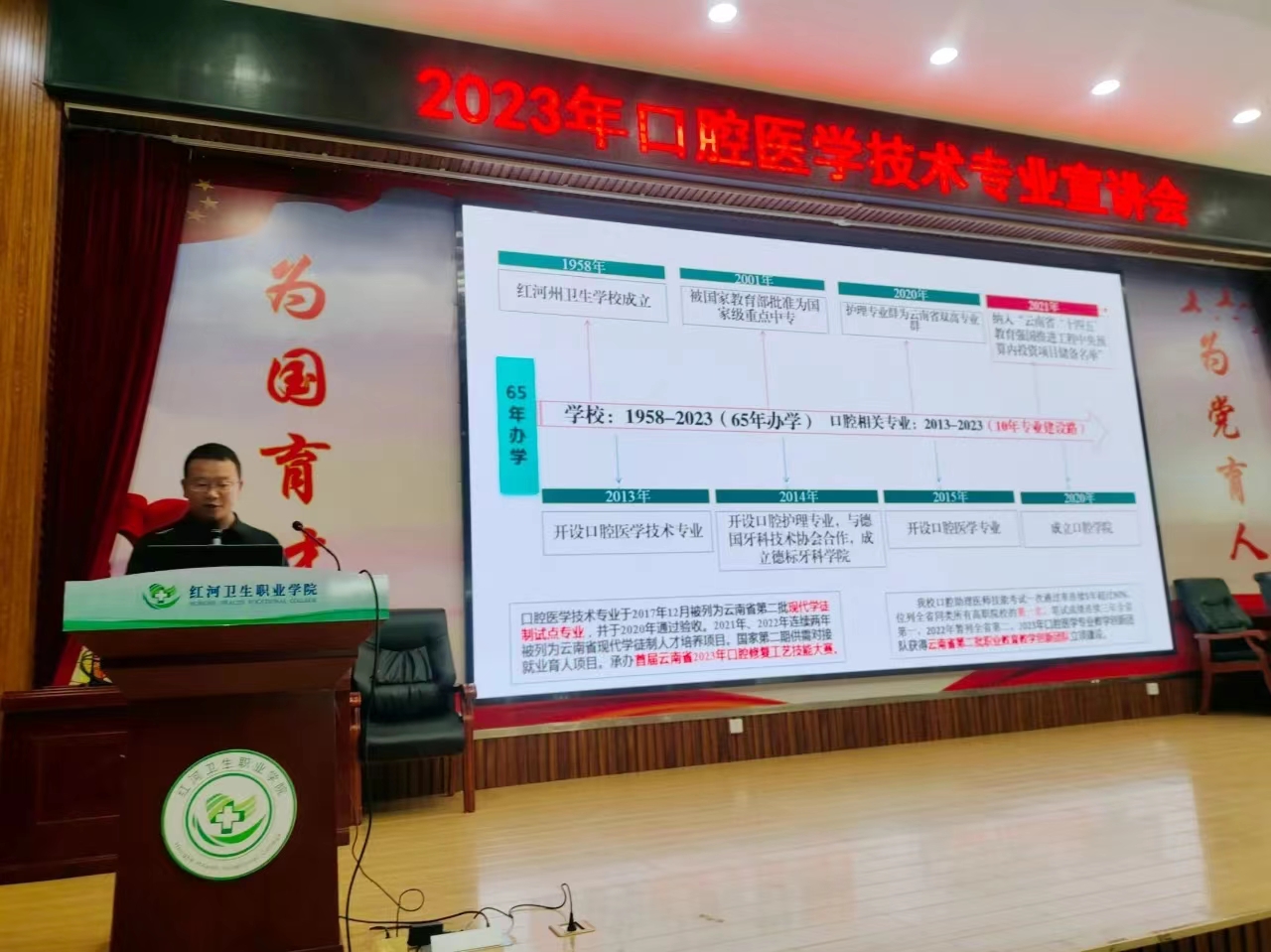 为了帮助2023级新生更好地了解口腔医学技术专业,提高专业认可度,树立正确的专业观,口腔医学技术专业于2023年8月30日下午14:30在图书馆二楼报告厅举行新生见面会。口腔学院陈平院长、纳锦副院长、口腔医学技术专业全体专任教师、辅导员及2023级全体口腔医学技术专业同学参加了本次大会。