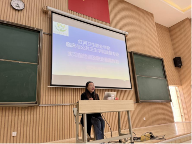 接着,副院长、康复治疗技术专业负责人付丹丹对即将出去实习的学生进行实习前岗前培训及职业暴露培训,为同学们能快速融入实习生活,适应岗位的要求带来有效的技巧和专业的防护知识。