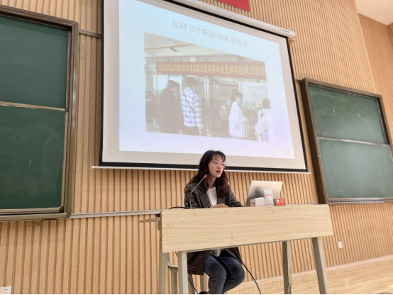 最后,辅导员陈倩倩老师开展了学生就业指导讲座。帮助同学们正确定位自己,脚踏实地,树立先就业再就业的就业观念。