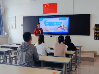 然后进行了《实验室安全知识培训》,主要从实验室安全的重要性、医学检验实验仪器日常使用与防护、认真查找目前实验室的危害隐患、如何做好实验课前、课中、课后的安全工作几个方面进行了分析。此外实验员反应突出问题主要是有污染性垃圾未按要求严格分类,设备用完未及时关水电等应引起重视针。对存在的安全问题做出应对策略,本学期每次实训课前需进行安全培训,在保障学生安全前提下开展实验。