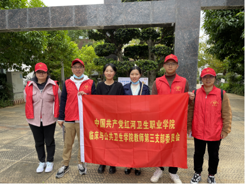 2021年10月27日下午,临床与公卫学院党总支带领20名党员同志在杏林苑小区开展创文知识宣传的主题党日活动,努力将“我为群众办实事、创文宣传我先行”的口号落到实处。