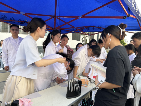 活动现场,眼视光专业的党员教师耐心细致地为每一位前来就诊的师生进行视力检查、眼镜清洗、眼镜维护等项目,并针对干眼症等常见眼病进行筛查和诊断。同时,党员志愿者们还向师生发放了爱眼护眼宣传资料,普及科学用眼知识,引导大家养成良好的用眼习惯,预防眼部疾病的发生。