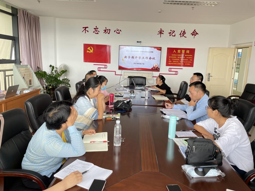 2021年8月27日上午8点30分,新学期开学之际,为了保证各项工作的顺利开展,马克思主义学院在校务管理中心9楼901会议室召开2021年秋季学期开学工作会议。会议由马克思主义学院副院长李兴旺主持,学院全体教师参加。