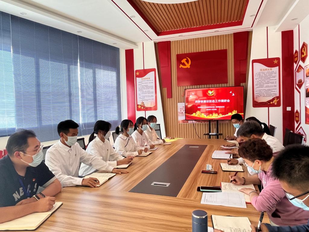 张云学书记认真聆听、记录学生的意见,重视学生提出的问题,指出团委学生干部要关注班级学生的思想动态,征集学生的意见,做好表率作用,发现问题及时纾解,掌握意识形态领域动向,守好底线。药学院党总支书记张郴、药学院团委负责人分别就本次调研活动进行发言。