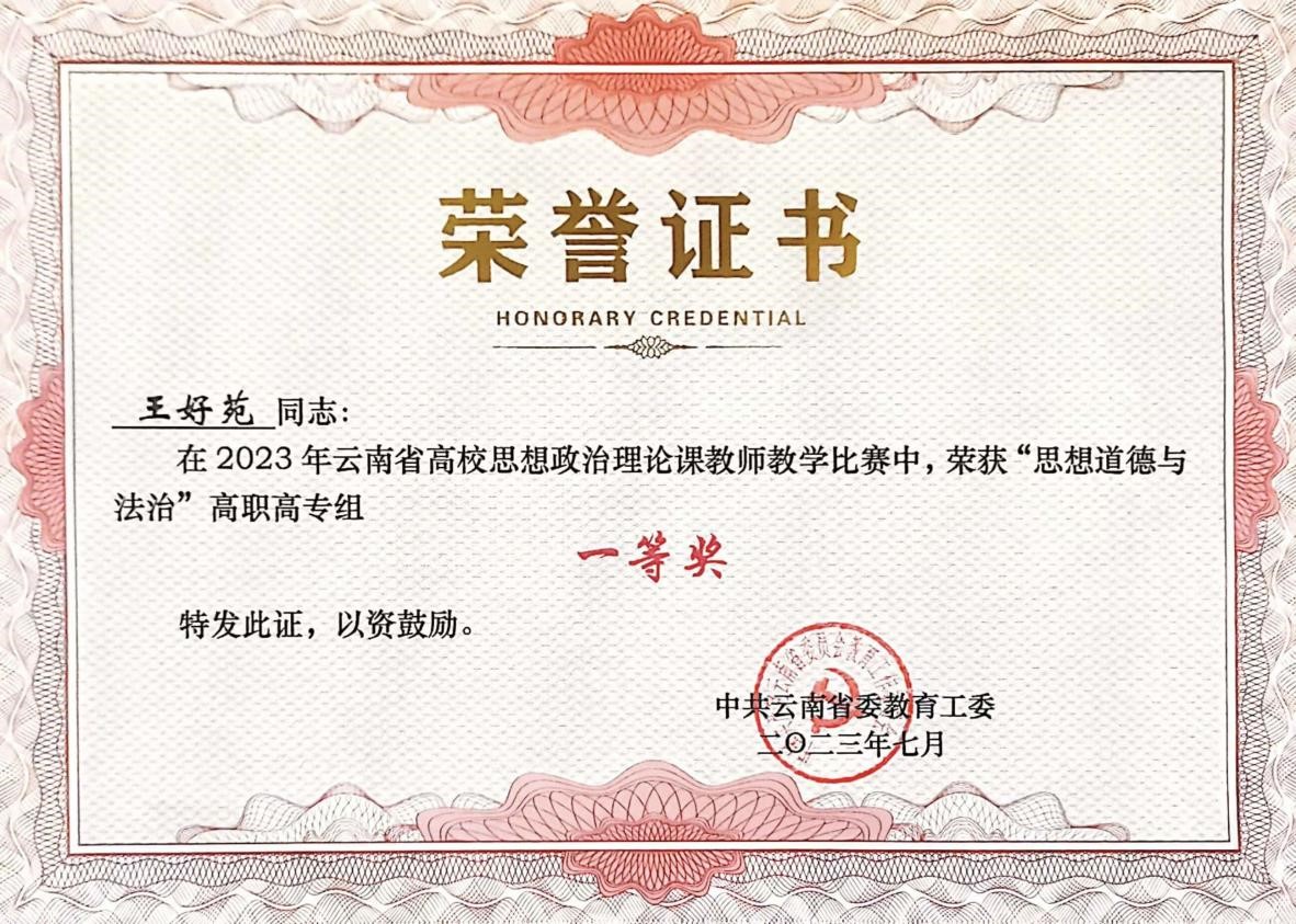 本次比赛共有来自全省82所高校的335名选手参赛。经过激烈的角逐,在“思想道德与法治”学科,ac米兰马克思主义学院教师王好苑以第一名的成绩荣获高职高专组一等奖。
