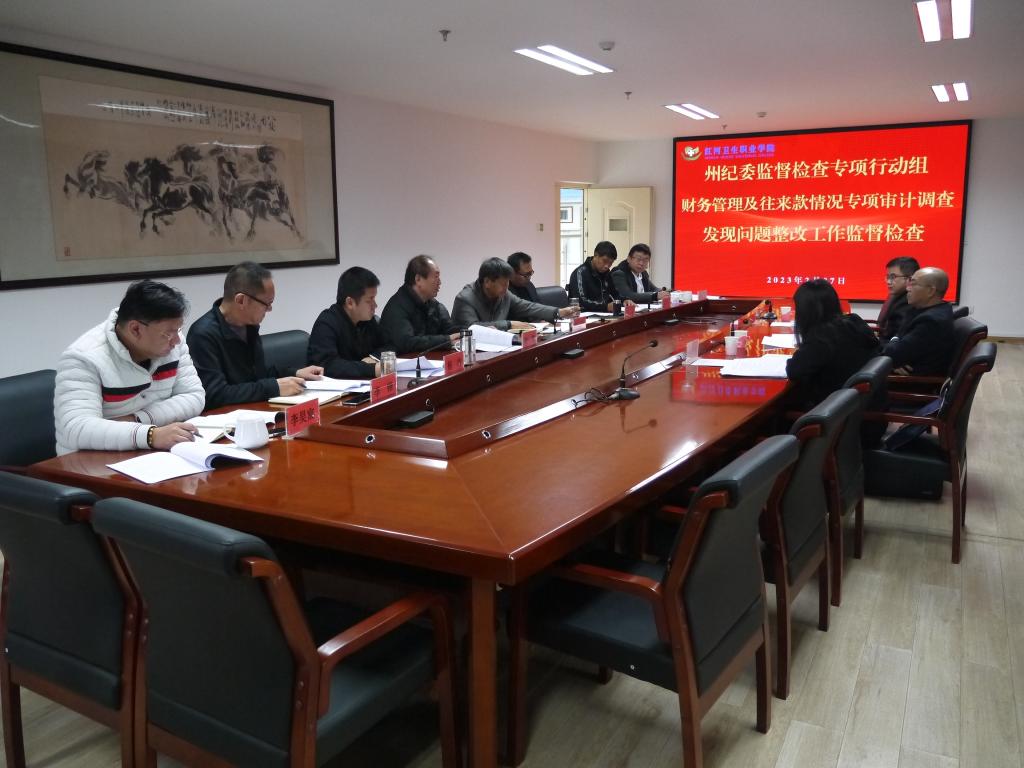 2023年2月27日上午,州纪委副书记、州监委副主任念怡敏、州纪委州监委第七监督检查室主任普李芳、州纪委州监委驻州教育体育局纪检监察组组长谢云到ac米兰开展监督检查财务管理及往来款情况专项审计调查发现问题的整改工作。学校党委书记张云学,党委副书记、院长唐飚,党委副书记周云雄,党委委员、纪委书记杨坤,党委委员、副院长朱有才,党委委员、副院长李锋及学校财务、审计、纪检、教务等有关部门主要负责人参加检查汇报会。