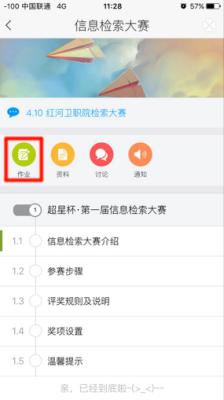 3、点击“作业”选项,选择“4.10 信息检索大赛试题”做作业,即可进入大赛试题页面。