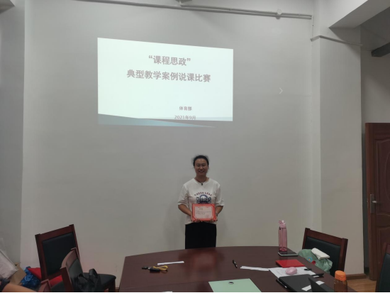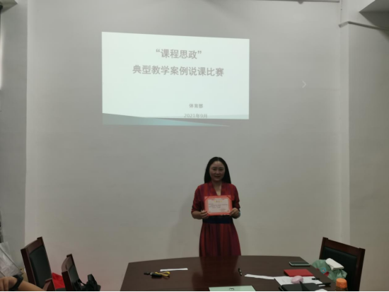 为深入贯彻落实习近平总书记关于教育的重要论述和全国教育大会精神,贯彻落实中共中央办公厅、国务院办公厅《关于深化新时代学校思想政治理论课改革创新的若干意见》,把思想政治教育贯穿人才培养体系,全面推进高校课程思政建设,发挥好每门课程的育人作用,提高高校人才培养质量,根据学校要求,体育部与9月15日开展“课程思政”典型教学案例说课比赛。
