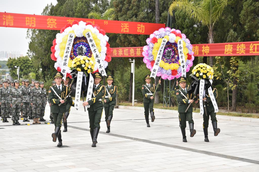 国旗护卫队的同学们迈着坚定有力的步伐,向革命烈士敬献花圈、花篮,向长眠在蒙自市烈士陵园的541名革命烈士致敬,致以最深切的缅怀和最崇高的敬意。