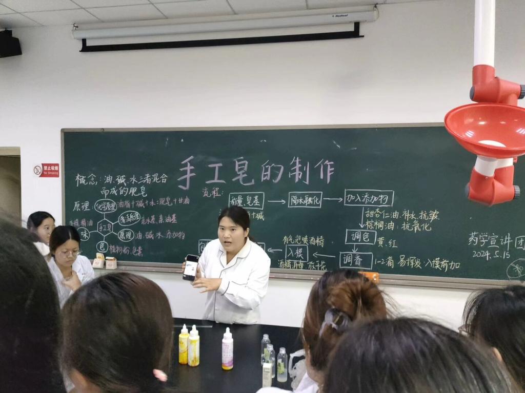 在这个追求环保和个性化的时代,手工皂因其独特的魅力和环保特性受到了越来越多人的喜爱。为培养学生的劳动观念和实践能力,同时创建具有特色的劳动教育品牌,药学宣讲团于2024年5月15日在实验实训楼南102举办了一场有趣的手工皂制作劳动实践教育活动。