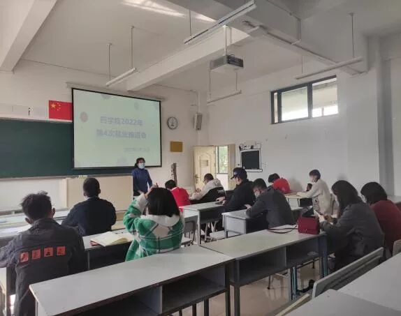 为推进2022届毕业生就业工作顺利进行,药学院于2022年2月28日下午3:00在教学楼南203召开第四次就业工作推进会。药学院党总支书记张郴、药学院院长阳敬、副书记孙雨诗,副院长李丽娟以及药学院全体辅导员和2022届毕业班班主任参加了此次会议。
