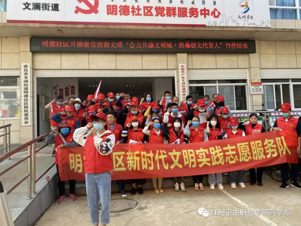 为进一步发挥党建引领作用,提高药学系党支部的凝聚力、战斗力,以党建设带动团委、工会、志愿者队伍,充分发挥各级党群组织的积极性,构建“党建带群建,群建壮党建”工作格局,扎实推进蒙自市创建全国文明城市工作的开展,2020年4月18日(星期六)上午9点,药学系党员志愿者到明德社区参加了“蒙自因我文明——合力共建文明城•我是创文代言人”入户宣传活动。