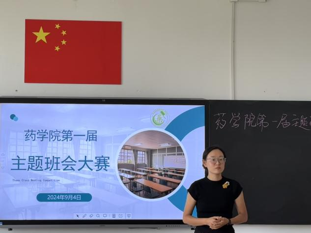 为进一步提高新时代辅导员、班主任的工作能力与育人水平,提升大学生思想政治教育质量,充分发挥主题班会在班集体正确的价值取向形成、学生自主教育和自主管理,实现师生平等互动沟通的教育整合功能,切实提高辅导员、班主任工作的科学性和艺术性,做真教育,真做教育。药学院于2024年9月4日在北楼606举行了第一届主题班会大赛。比赛共三个环节:参赛选手依次进行主题班会现场展示;大赛点评;总结及颁奖。担任本次比赛的评委老师有:阳敬、庄晨曦、蒋琳、马瑞菊、宾婕、杨瑶。孙雨诗老师担任比赛主持。