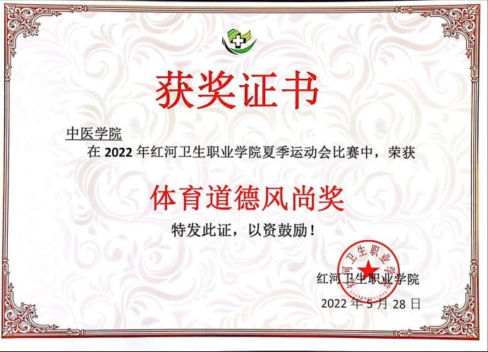 中医学院在ac米兰官方中文网站2022年夏季运动会比赛中荣获“体育道德风尚奖”