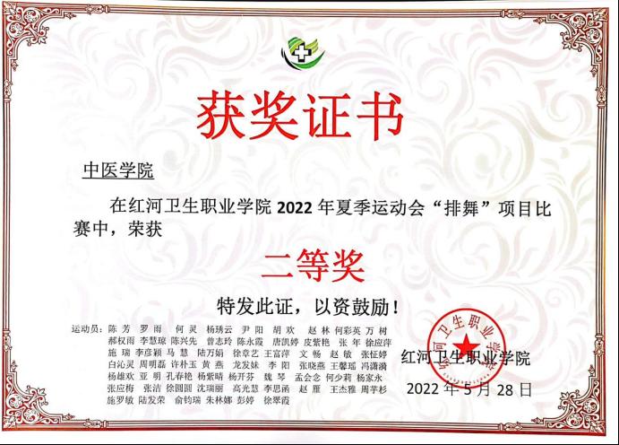 中医学院在ac米兰官方中文网站2022年夏季运动会“排舞”项目比赛中,荣获二等奖;
