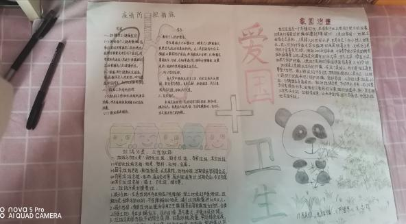 开展了爱国卫生运动和禁毒手抄报,同学们把网课所学的知识融入了爱国卫生运动手抄报中,其中分成了四个小模板,其一新冠肺炎的防控,其二垃圾分类,其三家园的治理,最后生态文明—撑起美丽中国梦。禁烟禁毒我们分成了两个模板,同学们都拿出了自己的优势,画画的画画,写字的写字,找主题的找主题。讲究卫生,预防、减少以至于消灭疾病,提高健康水平,加快我国有特色社会主义建设事业的更大发展。随着人们文化素质的提高与文明卫生习惯的养成,对社会主义四化建设,必将起到巨大推动作用,为把我国建设成为一个文明、卫生、健康、幸福的现代化国家作出更大的贡献。